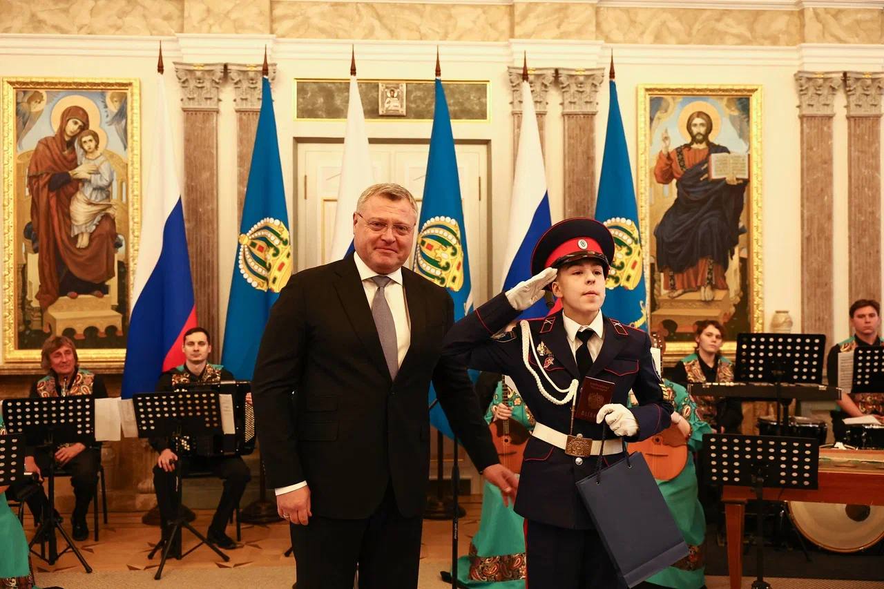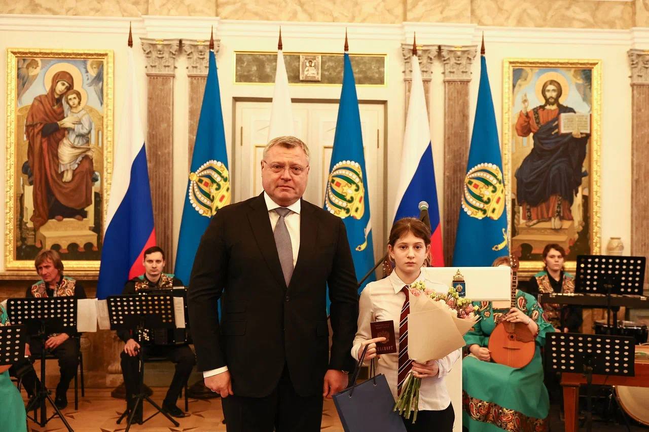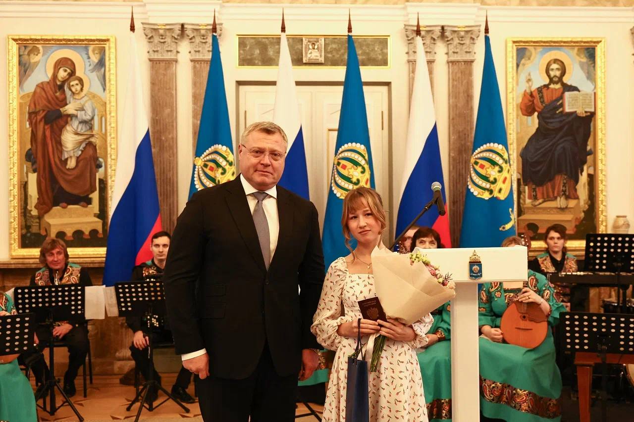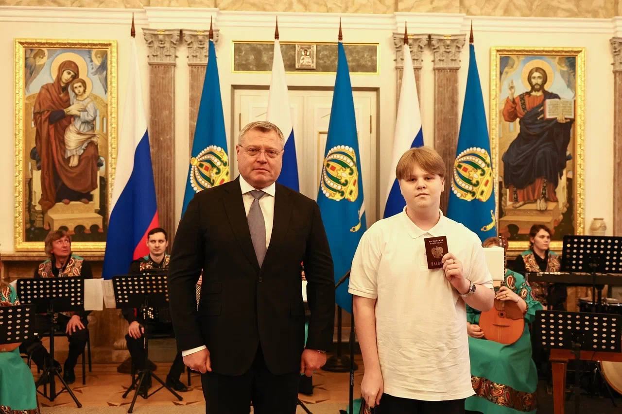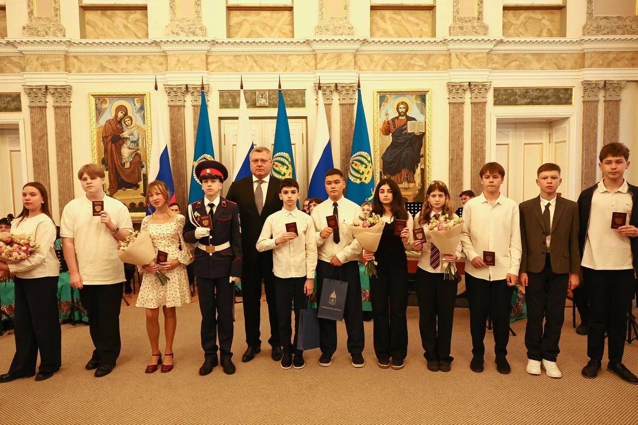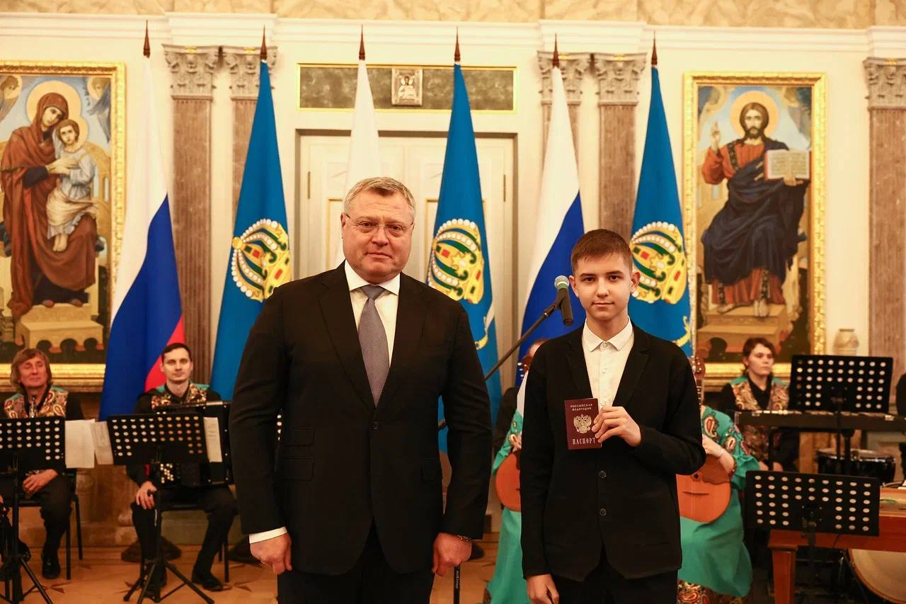 Ребятам, отличившимся в учебной, творческой, научной, спортивной и общественной деятельности свои первые паспорта гражданина Российской Федерации вручил Губернатор Астраханской области Игорь Юрьевич Бабушкин.