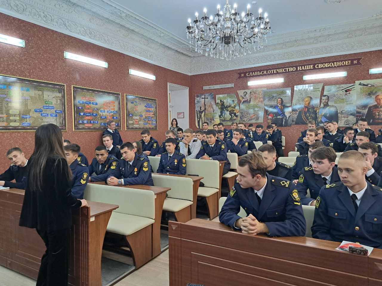 Кроме того, в ходе беседы курсанты были проинформированы о Всемирном фестивале молодежи, который пройдет 1-7 марта 2024 года на федеральной территории парка "Сириус".
